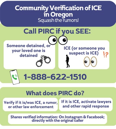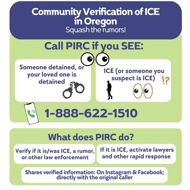 Portland Immigration Rights Coalition (PIRC) is a leading organization providing Migra Watch training and many other resources for our immigrant families, friends and neighbors. Put their hot line number in your contacts in case you do see ICE activity: 888-622-1510