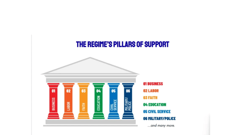Indivisible Justice For All is committed to learning about the peaceful ways to take down the pillars that are necessary for authoritarian regimes and then teach other people who'll go on to teach even more people. It's going to take millions of us all working together to dissuade the pillars that are supporting authoritarianism.